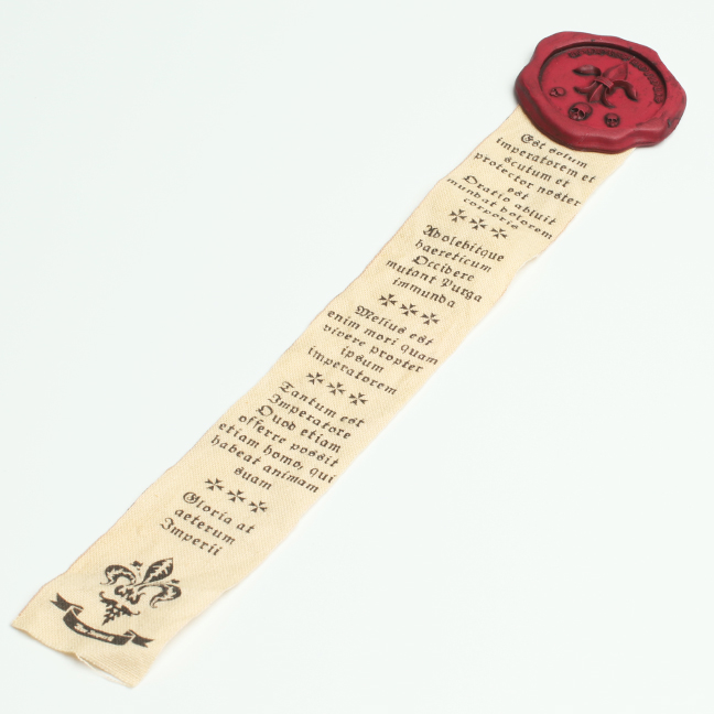 Pieczęć z lilijką reprezentującą czystość, rycerskość i honor. Trzy czaszki pod nią symbolizują ulotność życia, pamięć o zmarłych kompanach oraz odwagę w obliczu śmierci. Napisany łaciną tekst wspomina o imperatorze jako tarczy i obrońcy, modlitwie oczyszczającej ciało z bólu, spaleniu heretyków, mutantów i nieczystych istot, tym, że lepiej jest umrzeć niż żyć wbrew swemu imperatorowi oraz wiecznej chwale imperium. Pieczęć doskonała dla tych, którzy tropią i niszczą wszelkie plugastwa, nieczyste moce oraz wszelkich odstępców od właściwej drogi.